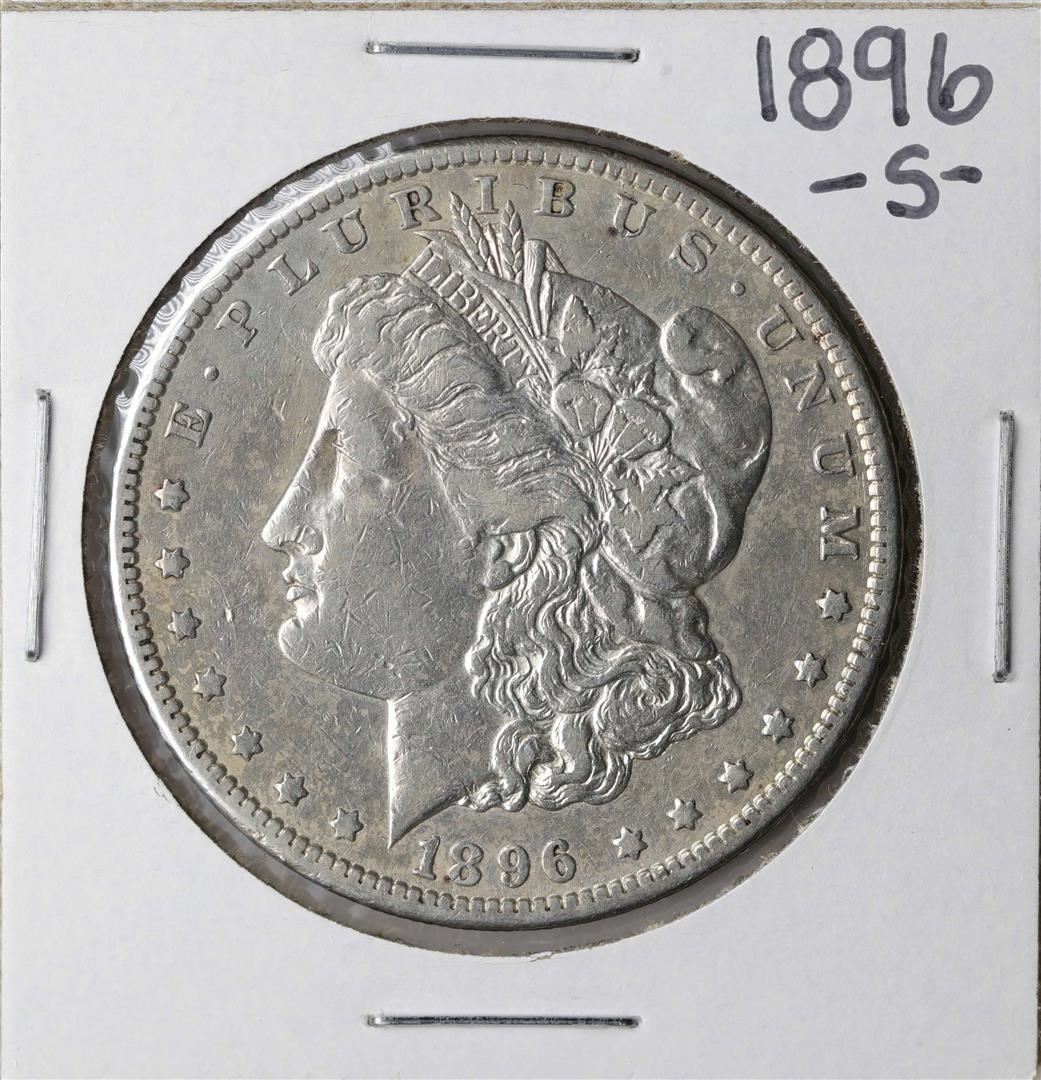 One 1896-S $1 Morgan Silver Dollar Coin.
