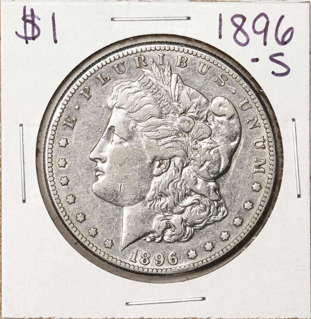 One 1896-S $1 Morgan Silver Dollar Coin.