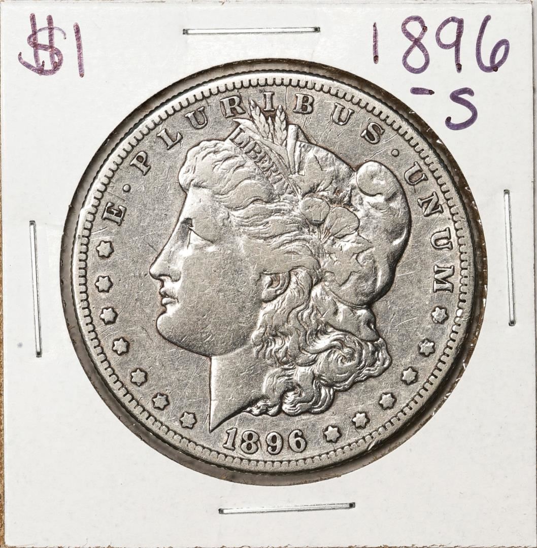 One 1896-S $1 Morgan Silver Dollar Coin.