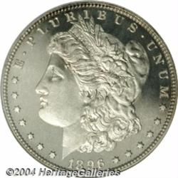 <B>1896<S$1> PR67 Cameo NGC.</B></I> We have commented in the past, but it bears repeating again, there are two dates from the 1890s that seem to consistently have been preserved in better condition and show better overall eye appeal than any others, 1896 and 1898. This piece was certainly the beneficiary of such preservation. As one might infer from the grade, the surfaces are virtually perfect. Examination with a magnifier reveals a couple of very thin diagonal marks on Liberty's cheek, but these have no effect on the overall presentation or grade of this magnificent proof Dollar. Light golden patina throughout, the fields are deeply mirrored and the devices heavily frosted with a two-toned contrast that is immediately evident to even the most casual viewer. A splendid and virtually unimprovable proof type coin. <BR><BR><B>Important notice:</B> Heritage usually auctions material at the rate of 200-250 lots per hour. On some occasions eBay Live bid software or the Internet may not be able to keep up with the pace of the auction. We recommend placing a realistic absentee bid now as insurance to avoid disappointment. Occasionally the auctioneer may eliminate or reject an eBay Live bid, and the auctioneer may also reopen a lot after the close of the eBay live bidding (usually because we missed an audience bid), and may reject your bid even if it shows you as the winning bidder. By bidding via eBay Live, you agree that Heritage may award the lot to another bidder at its sole discretion under the circumstances described above or any other reasonable circumstances. Since eBay bids are not shown to us until we open the lot on the floor, we treat those bids just like floor bids. In most cases the floor responds before the eBay bid is presented to us, due to Internet lag time, so for consistency we have made it a policy that floor bids are always considered first over tie eBay live bids. Also please note that all Heritage lots purchased through eBay Live carry a 20% Buyer's Premium. Please make sure you read the Terms and Conditions before you bid. </span></font></tr></table></td></tr></table>