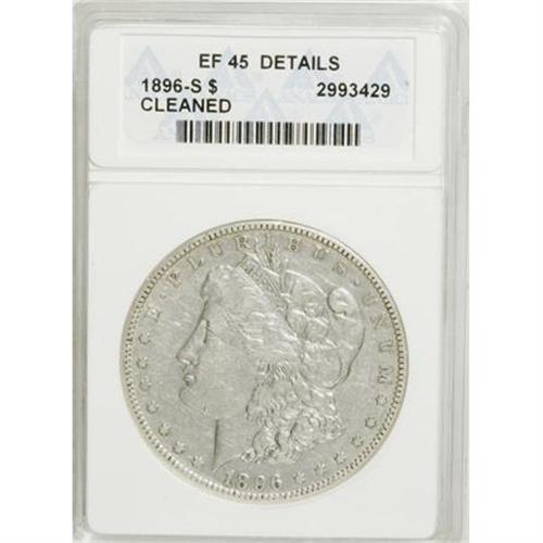 <B>1896-S $1 --Cleaned--ANACS. XF45 Details.</B></I> NGC Census: (68/733). PCGS Population (59/1336). Mintage: 5,000,000. Numismedia Wsl. Price for NGC/PCGS coin in XF45: $344. (#7244)<BR><BR><B>Coin Engraver:</B> George T. Morgan<BR><BR><b>Shipping:</b> Coins & Currency (<a target="_blank" href="http://www.heritageauctions.com/common/shipping.php">view shipping information</a>)