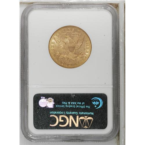 <B>1896-S $10 MS61 NGC.</B></I> The pale peach fields are luminous, while the peripheries exhibit vigorous cartwheel shimmer. This lower mintage issue must have mostly entered circulation, since NGC has certified just 55 pieces in all Mint State grades, some of which are undoubtedly resubmissions. Census: 26 in 61, 14 finer (4/07).<BR><BR><b>Shipping:</b> Coins & Currency (<a target="_blank" href="http://www.heritageauctions.com/common/shipping.php">view shipping information</a>)