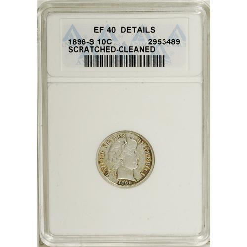 1896-S 10C --Cleaned, Scratched--ANACS. XF40 Details.