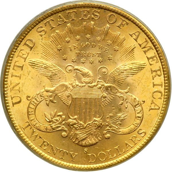 1896-S $20 Liberty. PCGS graded MS-62. Housed in an Old Green Holder. Nice even gold toning. A lustrous S-mint issue (PCGS # 9030) .