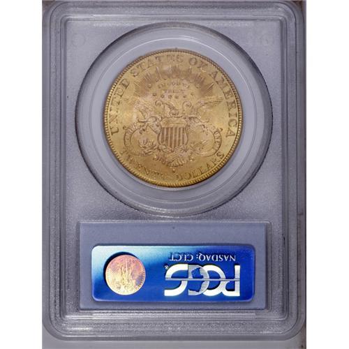 <B>1896-S $20 MS62 PCGS.</B></I> Quite lustrous with a few noticeable abrasions on the obverse. An attractive, Uncirculated example of this very scarce issue.