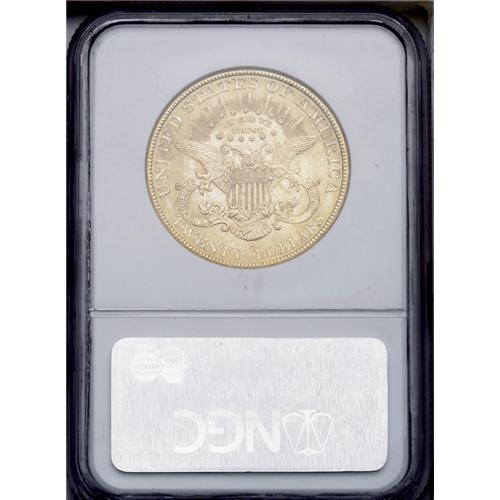 <B>1896-S<$20> MS63 NGC.</B></I> Boldly executed design elements characterize this 1896-S double eagle, with sharp definition apparent in Liberty's hair and in the eagle's feathers. Radiant apricot-gold luster adorns each side. The grade is limited by a scattering of minor abrasions, particularly on the obverse.