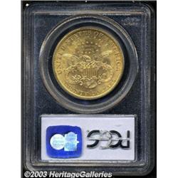 1896-S $20 MS63 PCGS. A scarce Double Eagle with only a handful of examples graded higher. This is an attractive piece with bright orange-gold luster, a small group of moderate abrasions in the left obverse field, a bold strike, and pleasing mild reflectivity. Important notice: Heritage usually auctions material at the rate of 200-250 lots per hour. On some occasions eBay Live bid software or the Internet may not be able to keep up with the pace of the auction. We recommend placing a realistic absentee bid now as insurance to avoid disappointment. Occasionally the auctioneer may eliminate or reject an eBay Live bid, and the auctioneer may also reopen a lot after the close of the eBay live bidding (usually because we missed an audience bid), and may reject your bid even if it shows you as the winning bidder. By bidding via eBay Live, you agree that Heritage may award the lot to another bidder at its sole discretion under the circumstances described above or any other reasonable circumstances. Also please note that all Heritage lots purchased through eBay Live carry a 20% Buyer's Premium. Please make sure you read the Terms and Conditions before you bid.