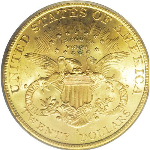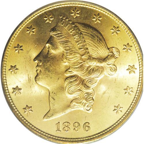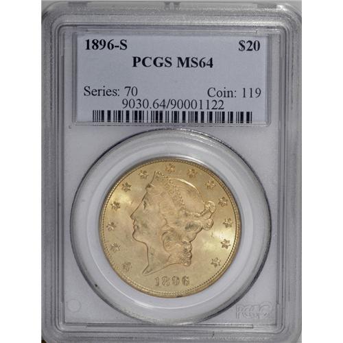 1896-S $20 MS64 PCGS. Well struck with flashy, scintil