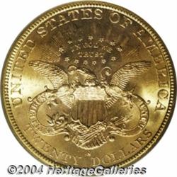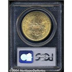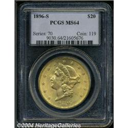 <B>1896-S<$20> MS64 PCGS.</B></I> Like most S-mint gold issues of the 1890s, the commonness of this Double Eagle disappears as one moves into the higher Mint State grade tiers. Lustrous and possessed of vibrant yellow-gold coloration, the surfaces reveal only a few trivial abrasions that rule out a full Gem designation. As befits the issue, every last detail exhibits crisp definition. An important opportunity for the advanced gold collector. Population: 76 in 64, 1 finer (3/04). <BR><BR><B>Important notice:</B> Heritage usually auctions material at the rate of 200-250 lots per hour. On some occasions eBay Live bid software or the Internet may not be able to keep up with the pace of the auction. We recommend placing a realistic absentee bid now as insurance to avoid disappointment. Occasionally the auctioneer may eliminate or reject an eBay Live bid, and the auctioneer may also reopen a lot after the close of the eBay live bidding (usually because we missed an audience bid), and may reject your bid even if it shows you as the winning bidder. By bidding via eBay Live, you agree that Heritage may award the lot to another bidder at its sole discretion under the circumstances described above or any other reasonable circumstances. Since eBay bids are not shown to us until we open the lot on the floor, we treat those bids just like floor bids. In most cases the floor responds before the eBay bid is presented to us, due to Internet lag time, so for consistency we have made it a policy that floor bids are always considered first over tie eBay live bids. Also please note that all Heritage lots purchased through eBay Live carry a 20% Buyer's Premium. Please make sure you read the Terms and Conditions before you bid. </span></font></tr></table></td></tr></table>