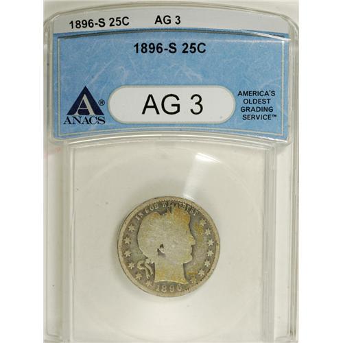 1896-S 25C AG3 ANACS. NGC Census: (30/134). PCGS P