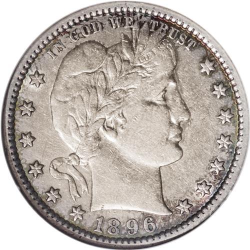<B>1896-S 25C AU50 NGC.</B></I> Obverse Die 2, Reverse Die 2 (per David Lawrence's second edition of <I>The Complete Guide to Barber Quarters).</B></I> The 1 in the date is centered over the right edge of a denticle, and the 8 is nearly centered over a denticle. The mintmark is lower than on Reverse Die 1, and closer to the R than the D in QUARTER DOLLAR. This example is well detailed and evenly worn, with scattered small abrasions on each side. The peripheries are decorated by attractive, speckled green, russet-red, gold, and tan patina. A pleasing representative of this important key date issue for the grade.<BR><I>From The Park Cities Collection.</B></I><BR><BR><b>Shipping:</b> Coin/Currency (<a target="_blank" href="http://www.heritageauctions.com/common/shipping.php">view shipping information</a>)