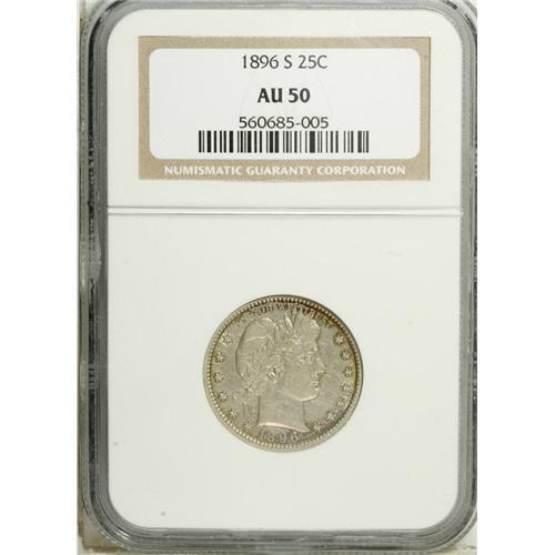 1896-S 25C AU50 NGC. Obverse Die 2, Reverse Die 2 (per