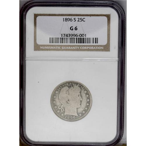 1896-S 25C Good 6 NGC. Light gray surfaces take on sli 1896-S[25C] Good 6 NGC.