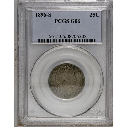 1896-S 25C Good 6 PCGS. Well-worn but appealing with g