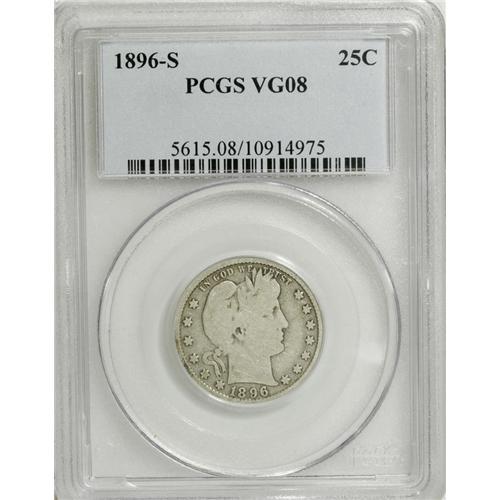 1896-S 25C VG8 PCGS. The first of three prominent San