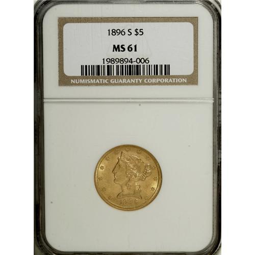 1896-S $5 MS61 NGC. As an issue the 1896-S half eagle