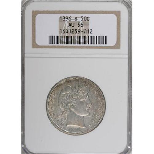 <B>1896-S 50C AU55 NGC.</B></I> Pleasingly detailed with faint, scattered marks on the lightly worn devices and in the luminous fields. Rich gold-orange and yellow-green patina drapes the margins, while the centers show silver-gray toning.<BR><BR><B>Coin Engraver:</B> Charles E. Barber<BR><BR><b>Shipping:</b> Coins & Currency (<a target="_blank" href="http://www.heritageauctions.com/common/shipping.php">view shipping information</a>)