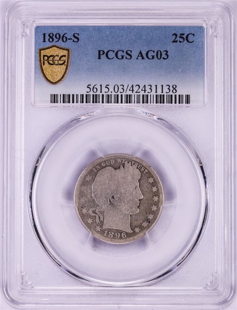 One 1896-S Barber Quarter Coin PCGS AG03. PCGS Graded.