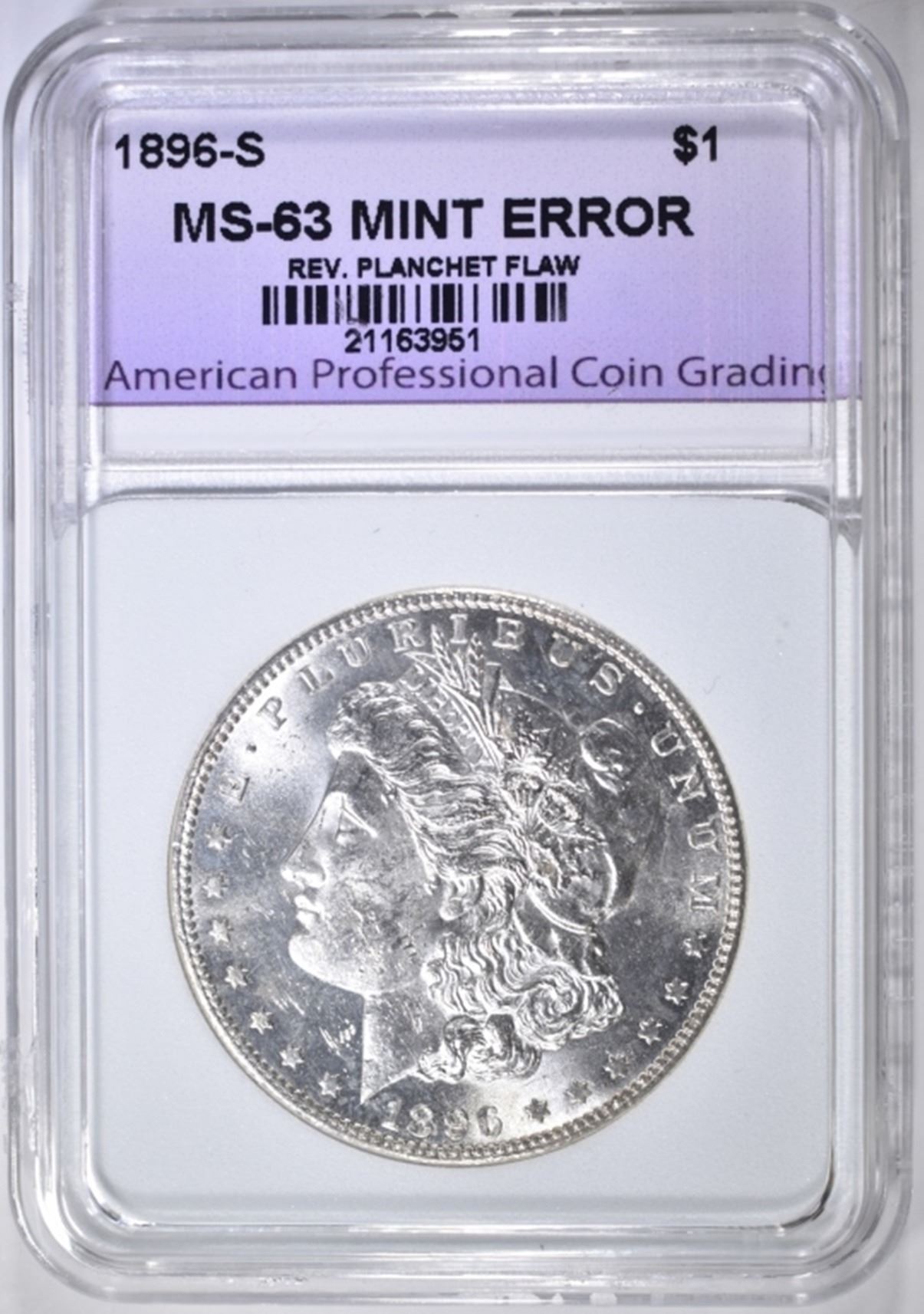 1896-S MINT ERROR MORGAN DOLLAR, APCG CH BU