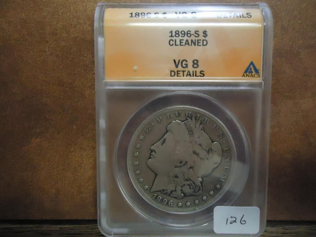 1896-S MORGAN SILVER DOLLAR ANACS VG8 DETAILS