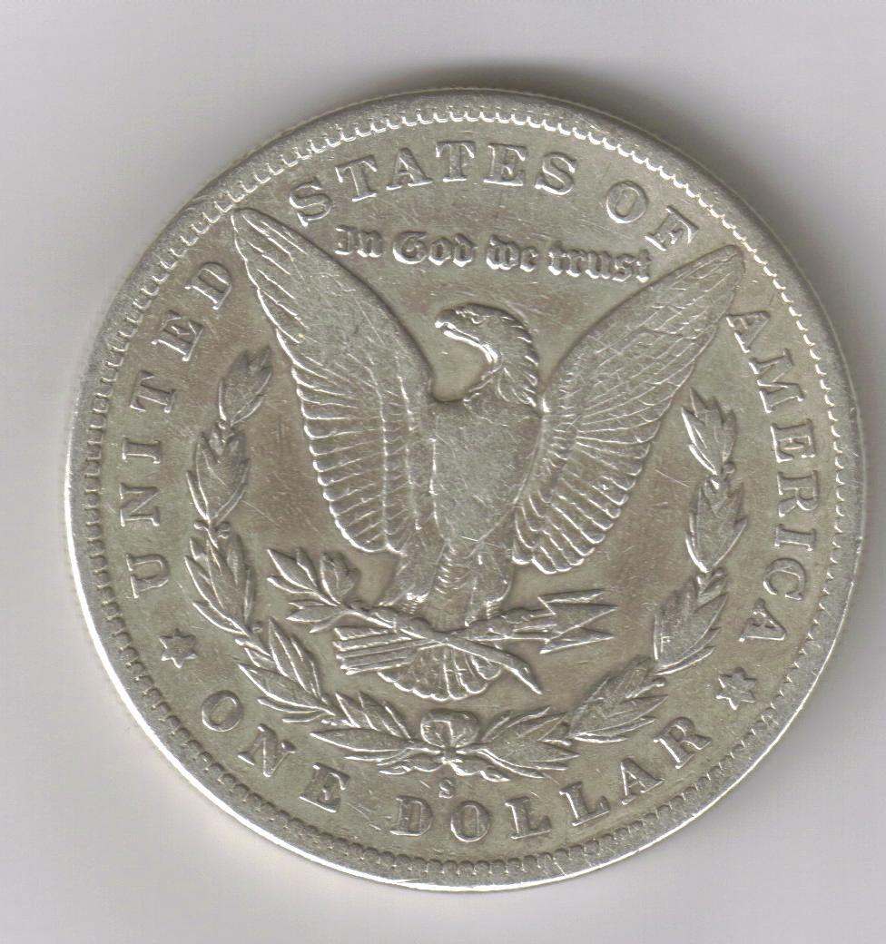 1896-S MORGAN DOLLAR VF-20 WITH VAM-5 RARITY# 4 ( S / S IS A DOUBLE PUNCHED S MINT MARK, SET TO RIGHT & UP ) WITH THIS VAM-5 THE COIN IS WORTH ABOUT $ 90 "KEY DATE COIN"