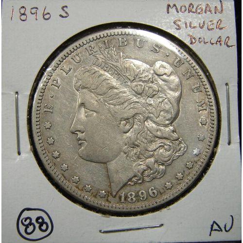 1896-S U.S. MORGAN SILVER DOLLAR. AU.