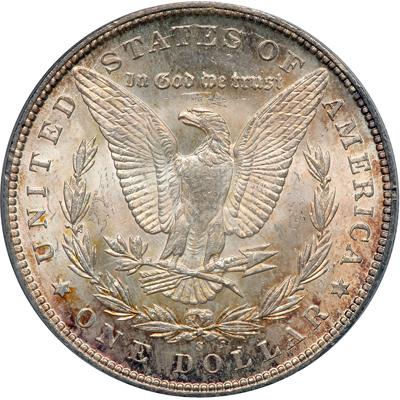1896-S Morgan Dollar. PCGS graded MS-65. A gem example, intensely lustrous and delicately toned. It seems probable that most of the 5 million 1896-S dollars that were struck entered into circulation, as circulated examples are seen often while high grade Mint State coins are seldom encountered. Like its similarly dated O-mint counterpart, the 1896-S is an easy coin to obtain in worn grades, but a significant rarity in Mint State. This is a satiny smooth Gem that displays sparkling mint luster under the toning, luster with nice cartwheel spin to it. Well, but not fully struck, there are only the slightest abrasions present on either side. A lovely Mint State 65 example of this conditionally scarce issue.Pop 52; 3 finer, 1 in 66, 1 in 67, 1 in 69 (PCGS # 7244).