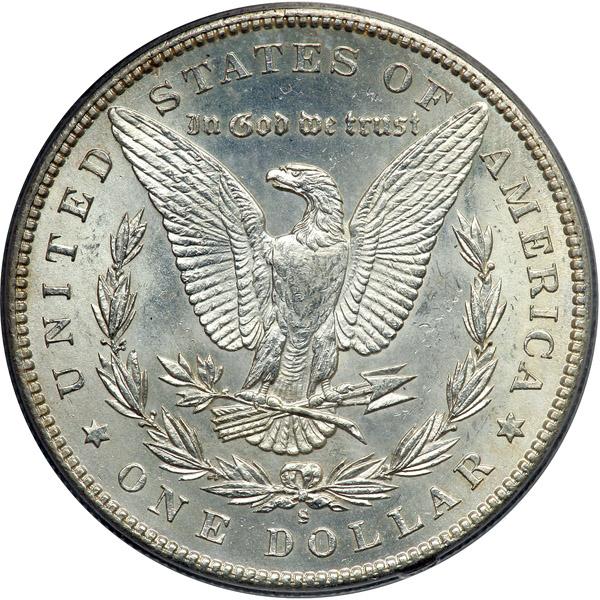 1896-S PCGS graded Genuine. Our grade is MS60 lightly cleaned. Nice sharp strike. Has a small dark includion on the eyebrow (PCGS # 7244) .