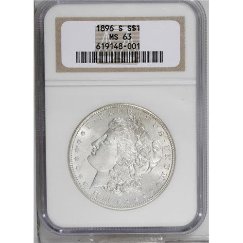 1896-S S$1 MS63 NGC. The bright, snow-white surfaces a