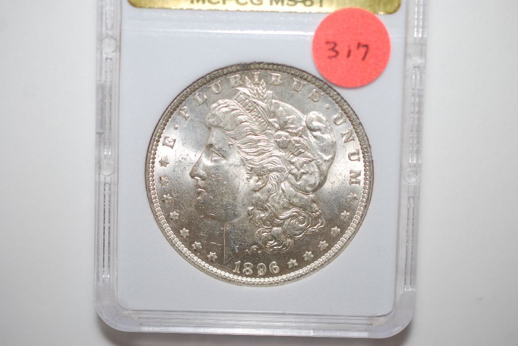 1896 Silver Morgan $1; MCPCG Graded MS61; EST. $60-80