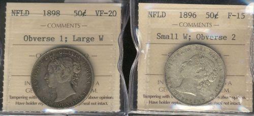 1896 Small "W" Obverse 2 ICCS F15, 1898 Large "W" Obverse 1 ICCS VF20