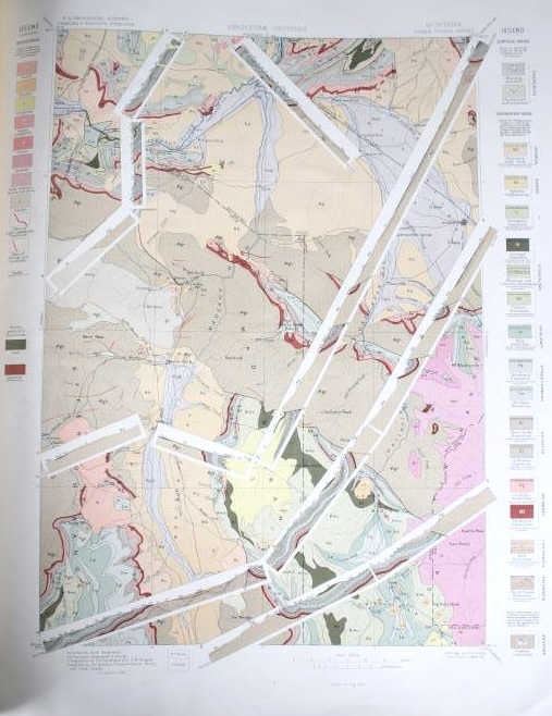The condition of this survey is good, with wear and foxing consistent with its age. It is shown behind a protective plastic sleeve. The measurements of this geological survey are 22"L x 18.5"W.