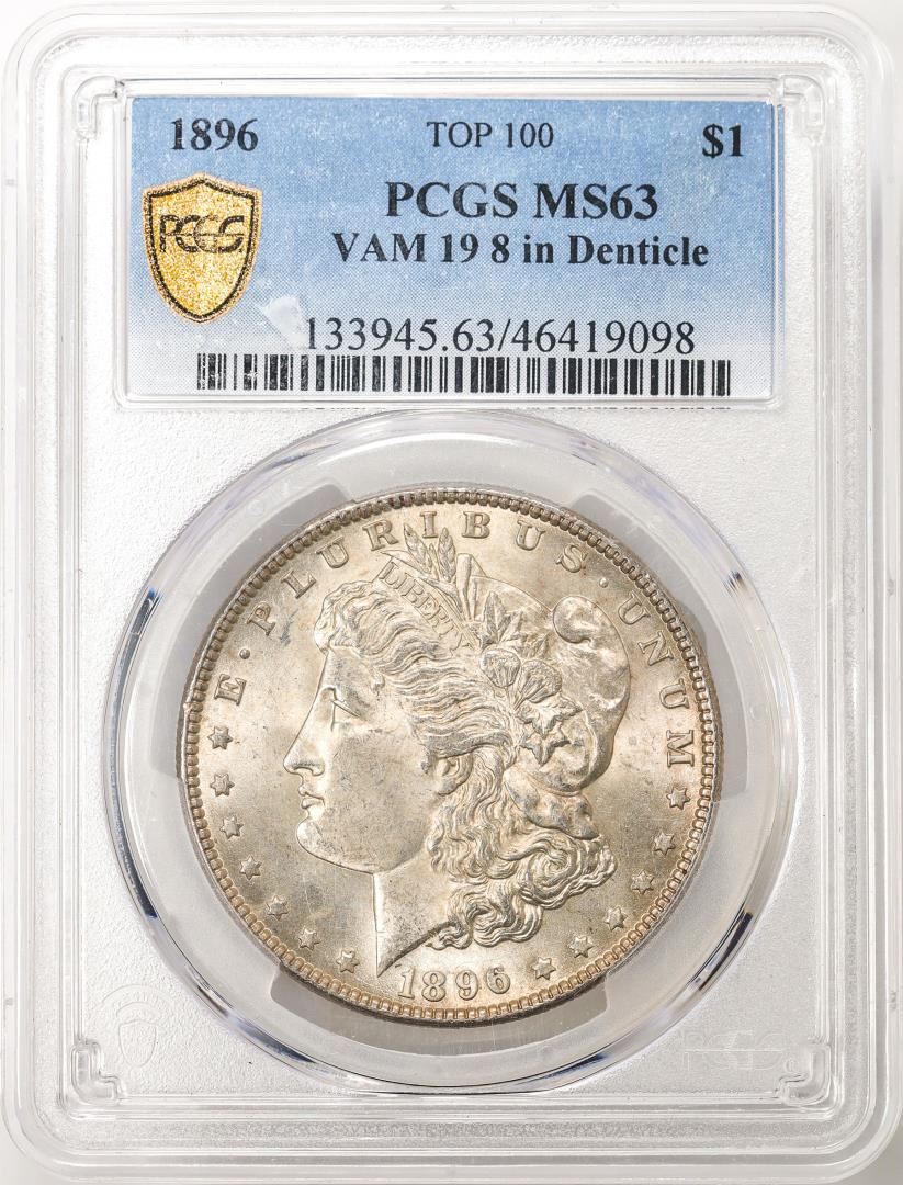 1896 VAM-19 8 in Denticle Top 100 $1 Morgan Silver Dollar Coin PCGS MS63