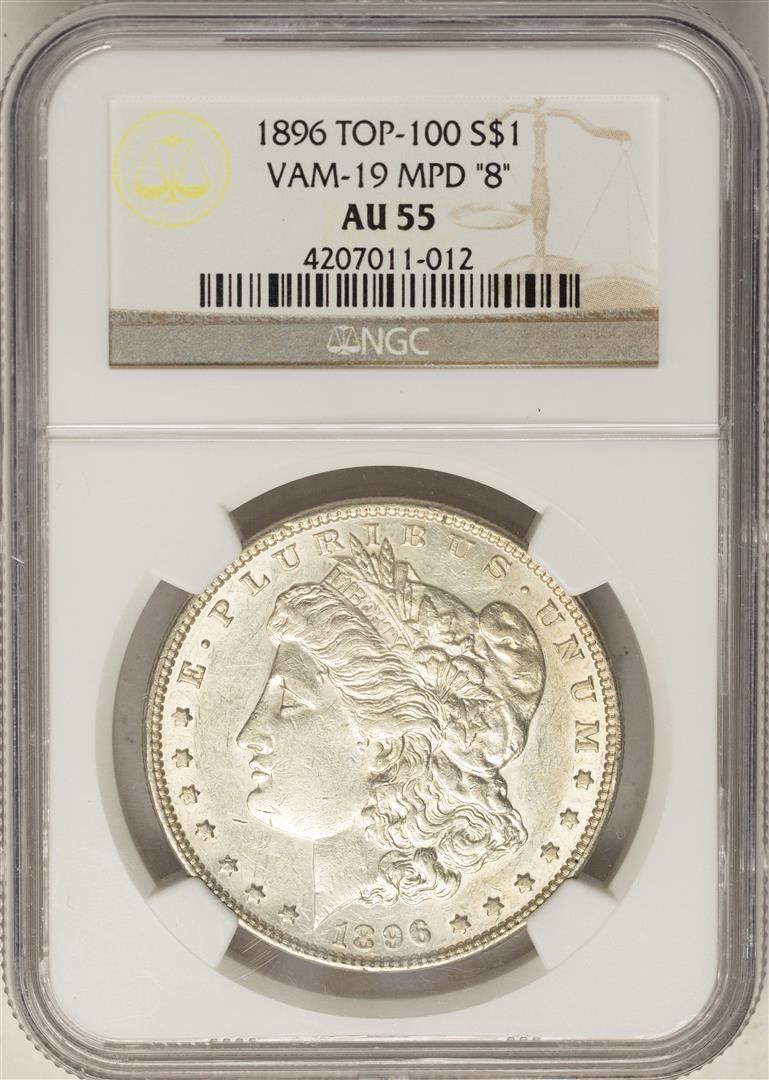 One 1896 VAM-19 MPD "8" $1 Morgan Silver Dollar Coin NGC AU55 Top 100. NGC Certified.
