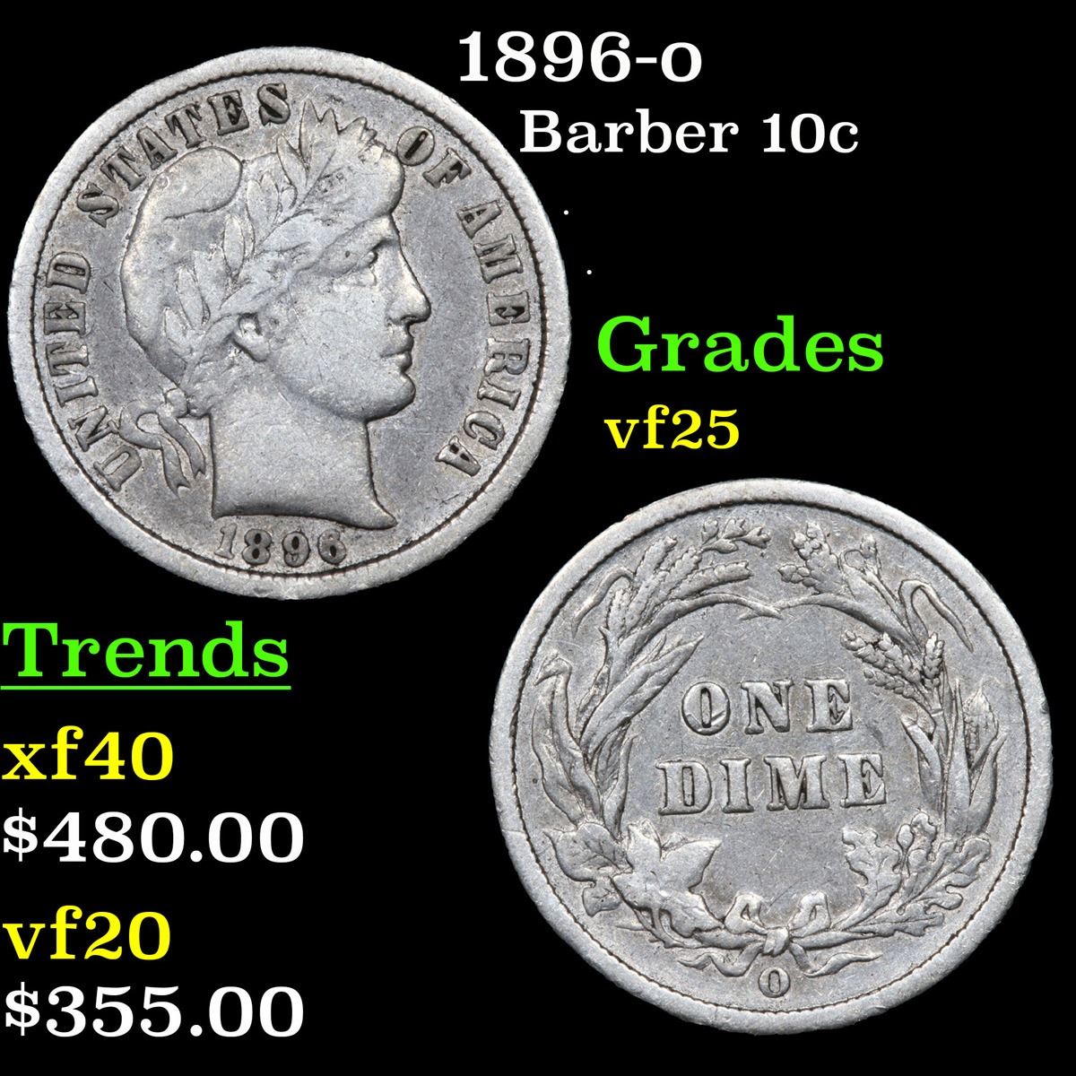 1896-o . . Barber Dime 10c Grades vf+. A much harder date.