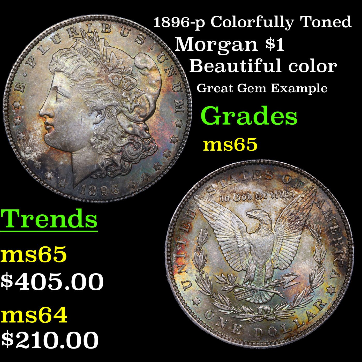 1896-p Colorfully Toned Morgan Dollar $1 Grades GEM Unc.