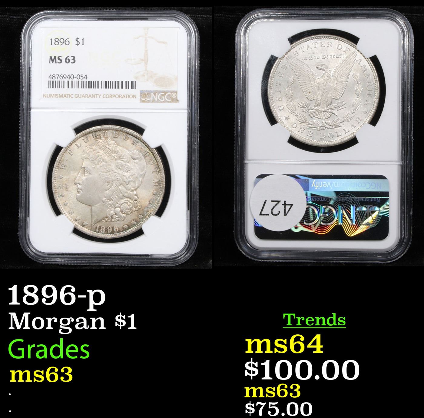 1896-p Morgan Dollar $1 Graded ms63 By NGC. 0
