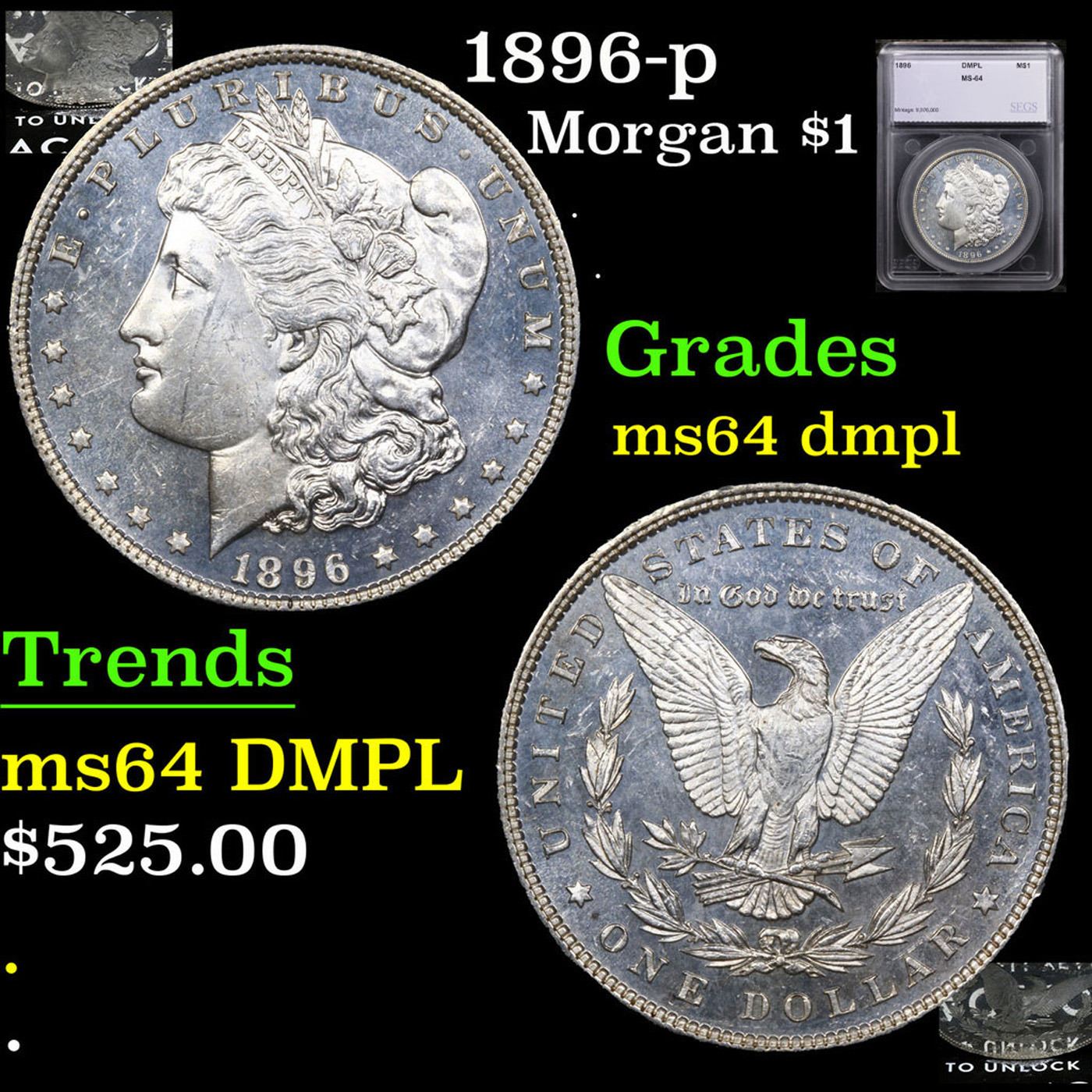 1896-p Morgan Dollar $1 Graded ms64 dmpl BY SEGS. A Corey's Pick, Bid to Win Coin