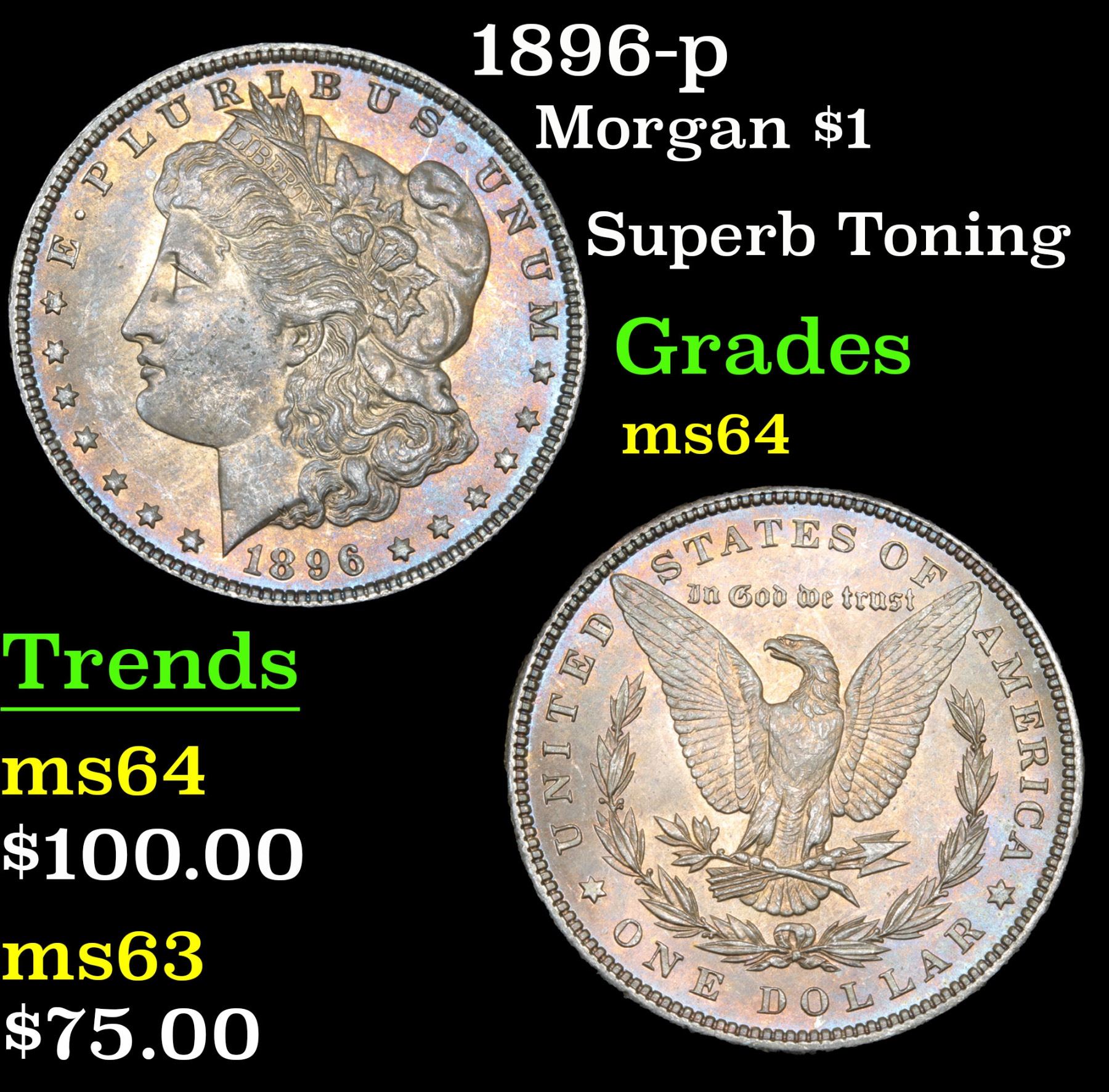 1896-p Morgan Dollar $1 Grades Choice Unc. Superb Toning