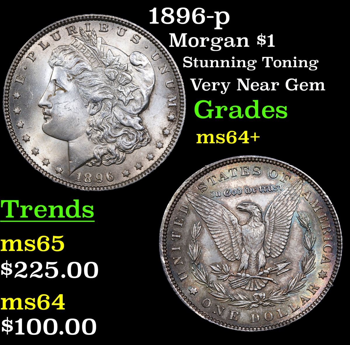 1896-p Stunning Toning Very Near Gem Morgan Dollar $1 Grades Choice+ Unc.