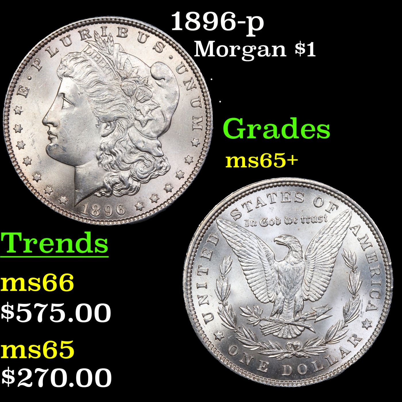 1896-p Morgan Dollar $1 Grades GEM+ Unc.