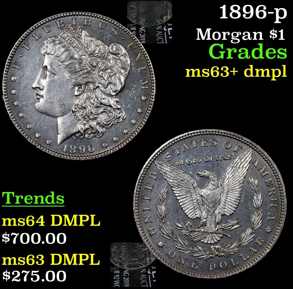 1896-p Morgan Dollar $1 Grades Select Unc+ DMPL.