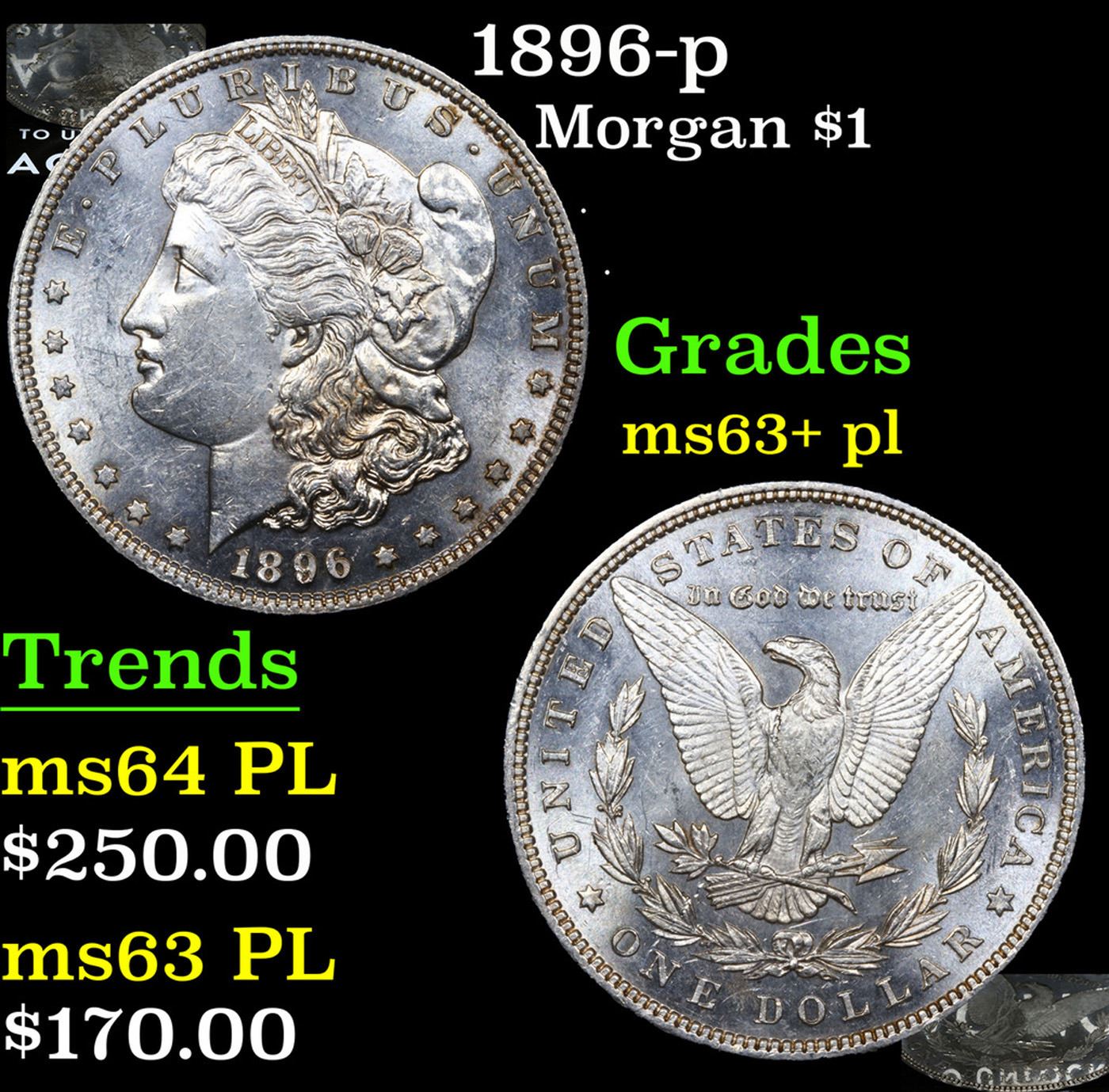 1896-p Morgan Dollar $1 Grades Select Unc+ PL.