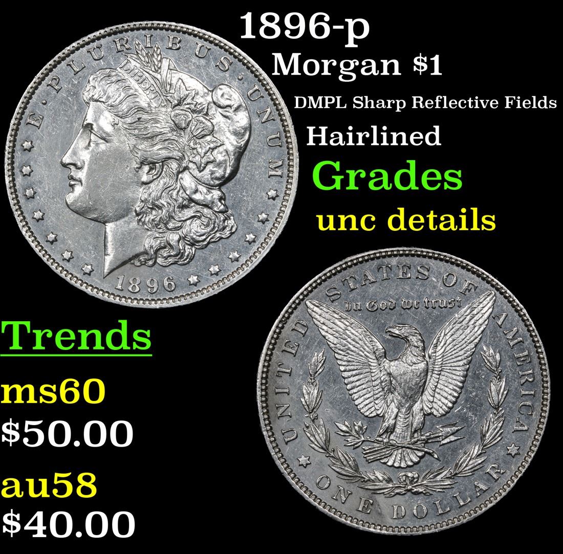 1896-p DMPL Sharp Reflective Fields Hairlined Morgan Dollar $1 Grades Unc Details.