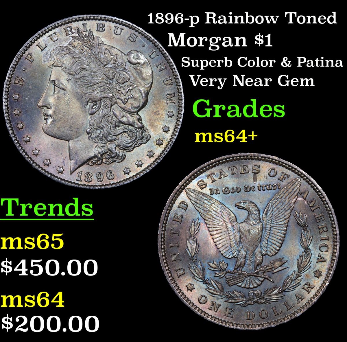1896-p Rainbow Toned Superb Color & Patina Very Near Gem Morgan Dollar $1 Grades Choice+ Unc. A Corey's Pick, Bid to Win Coin
