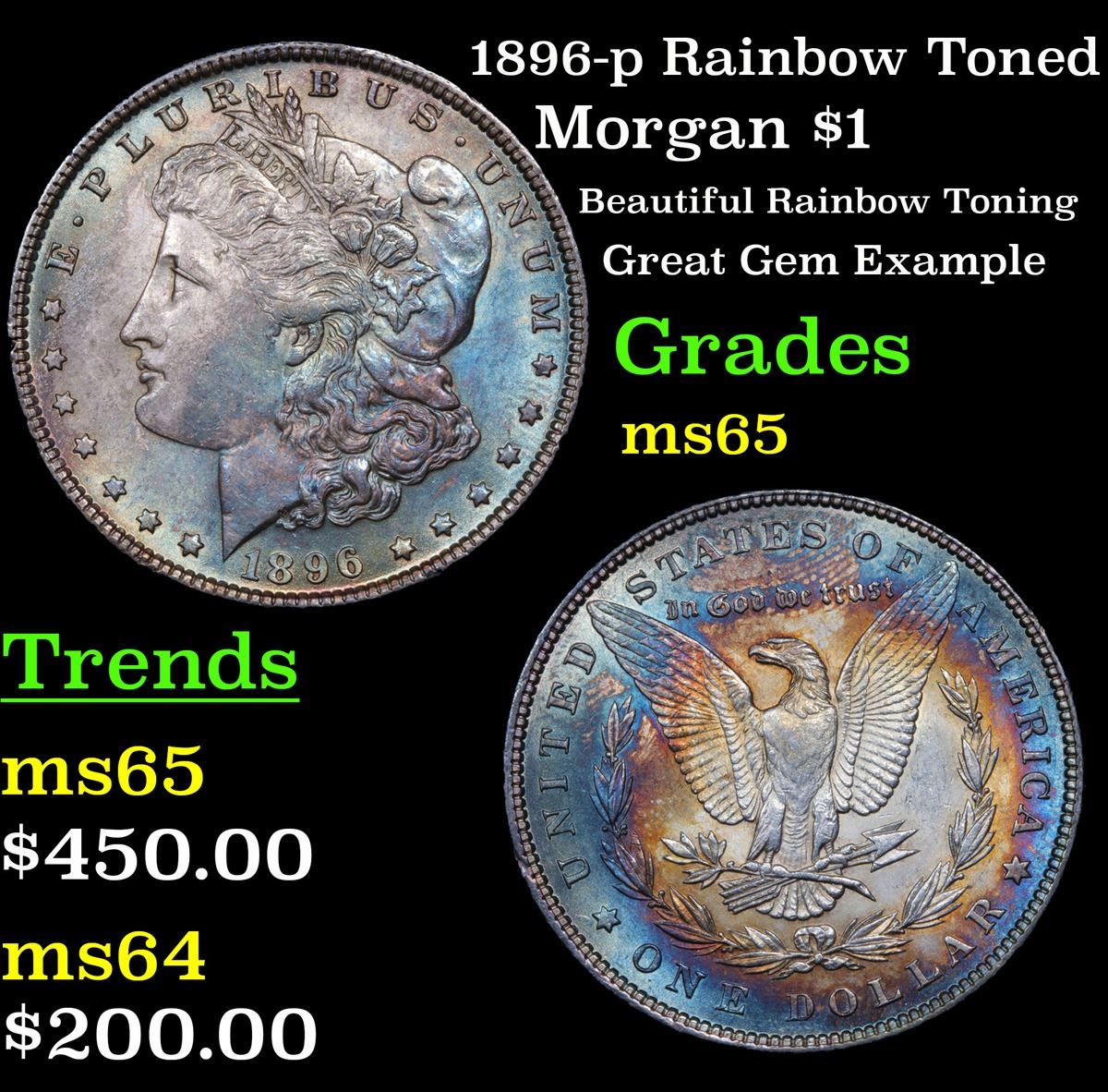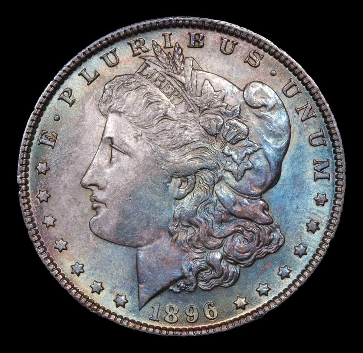 1896-p Rainbow Toned Morgan Dollar $1 Grades GEM Unc.