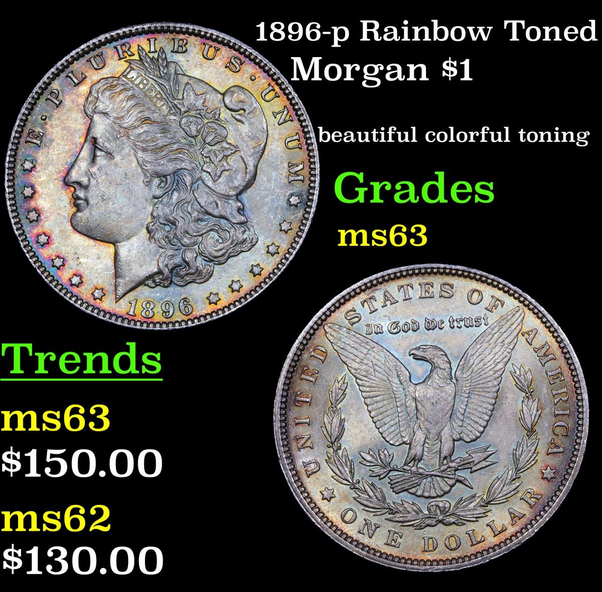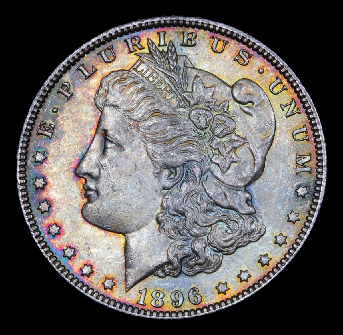 1896-p Rainbow Toned beautiful colorful toning . Morgan Dollar $1 Grades Select Unc.