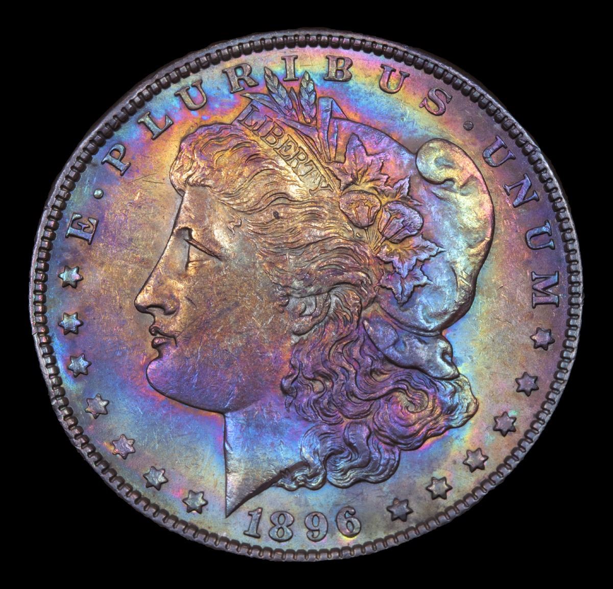 1896-p Rainbow Toned Morgan Dollar $1 Grades Select Unc.