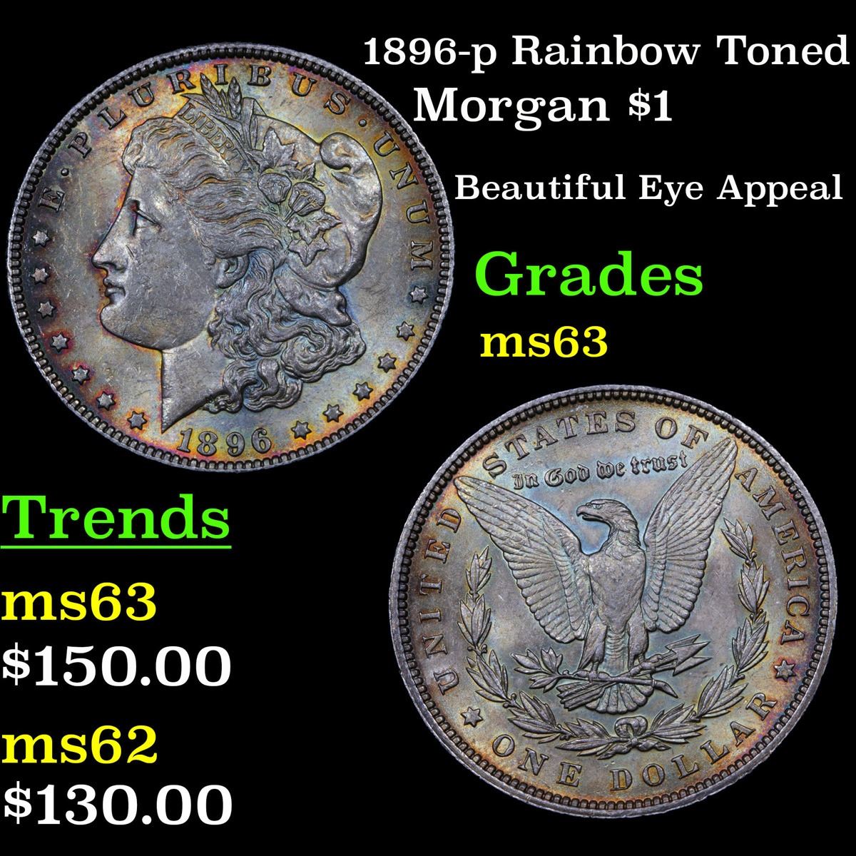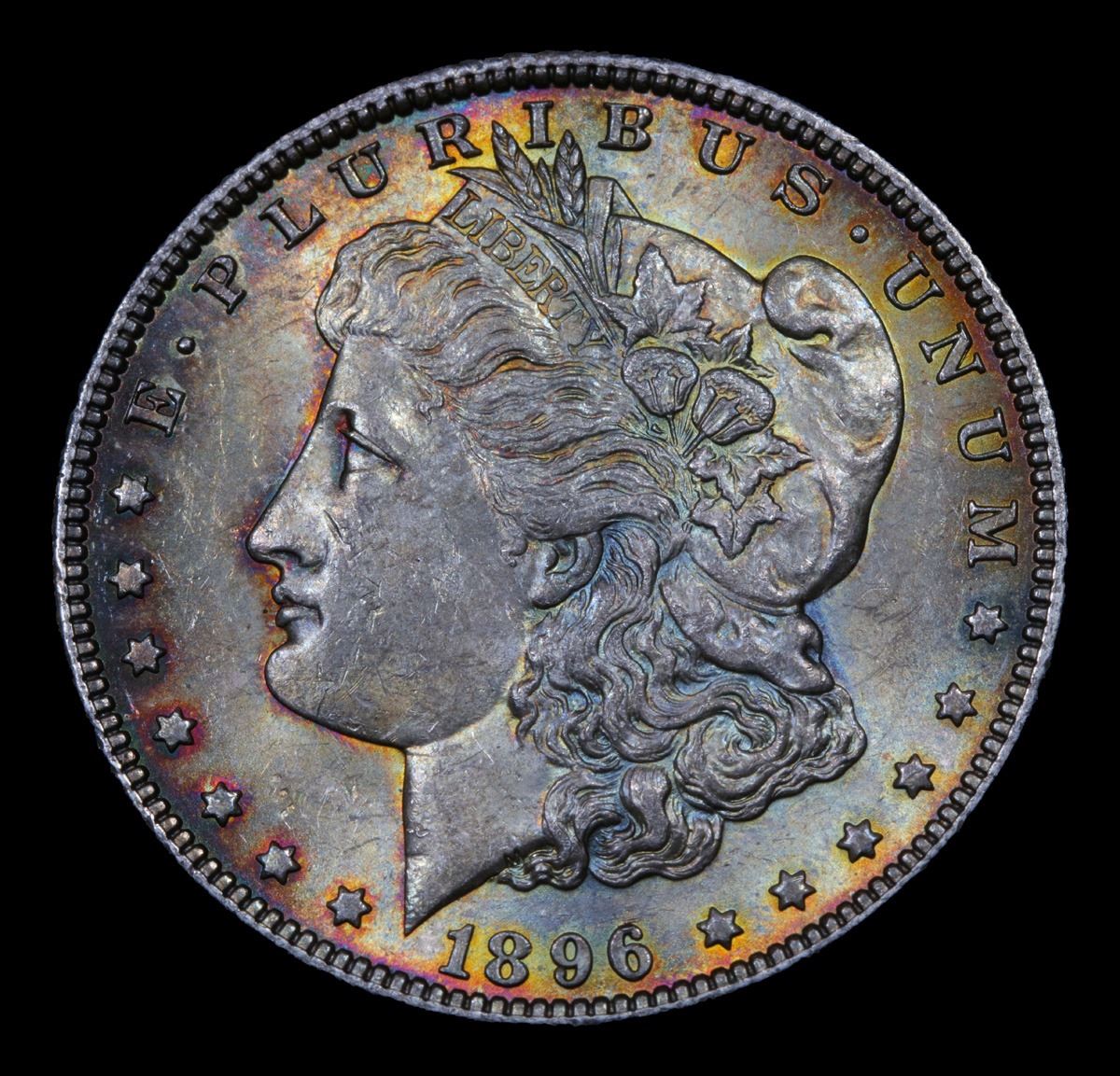 1896-p Rainbow Toned Morgan Dollar $1 Grades Select Unc.