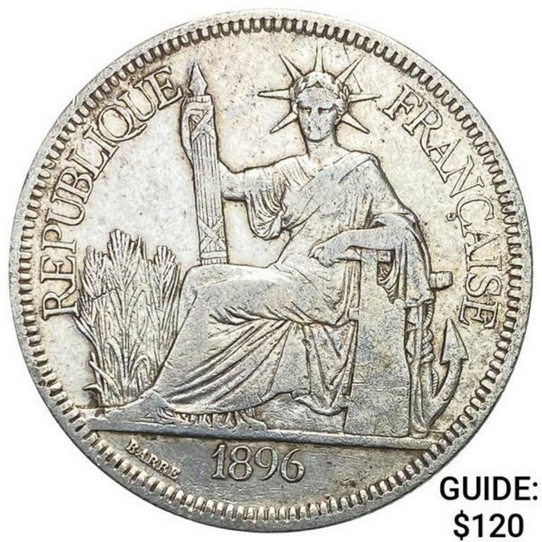 1896A French Indochina 1 Piastre ABOUT UNCIRCULATED